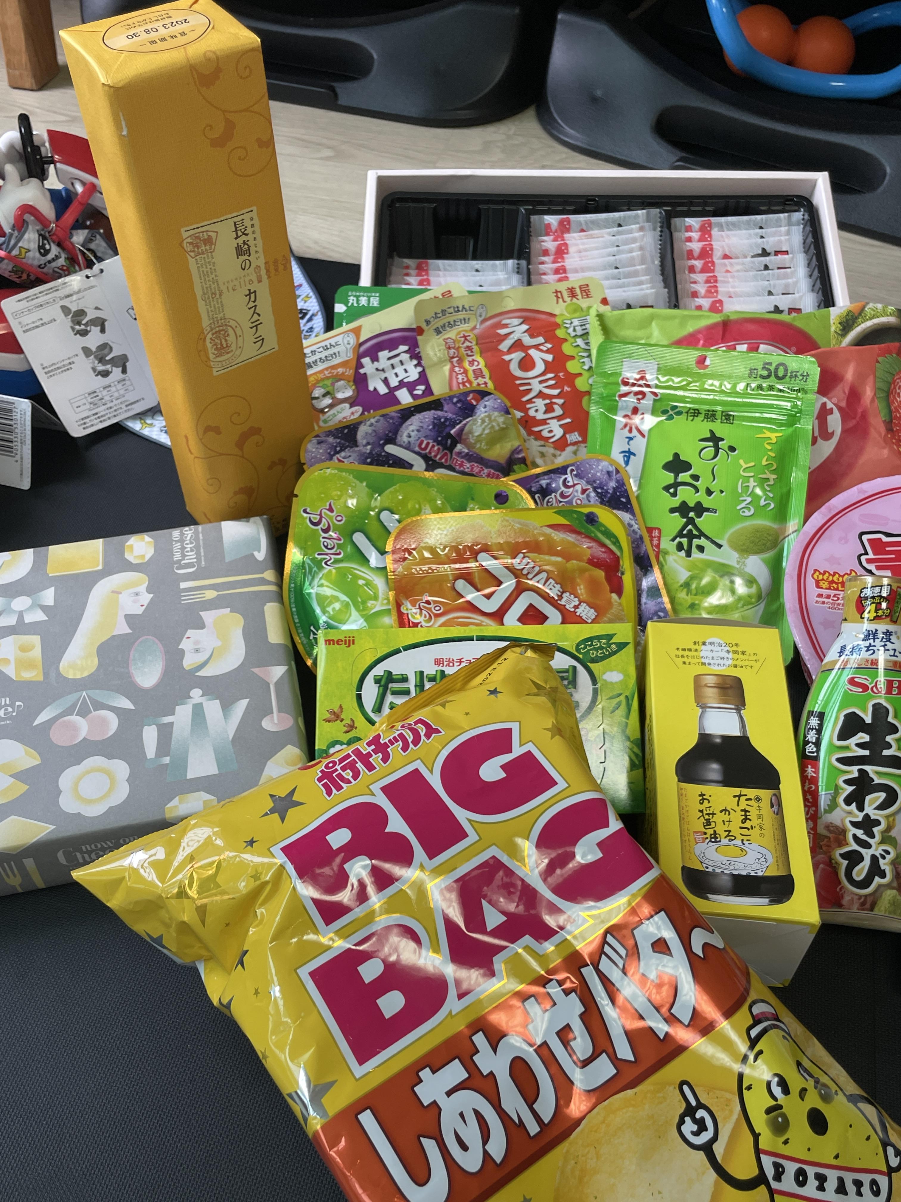 간사이공항에서 산 허니카스테라(노란 세로박스), 밑에 박스는 고급쿠크다스(ㅋㅋ), 그리고 오른쪽 로이스 감자칩, 맨 위쪽에 있는건 게맛칩. 게맛칩은 남친이 예전에 오사카 다녀왔을때 사왔던 존맛 과자로 기억해서 이번에도 사왔다. 역시 존맛탱. 별로 안유명해서 누가좀 알아줬으면 싶음 ㅠ 맥주안주로 최고! 회사 동료들 나눠주는 용으로 사가도 괜찮을듯 싶다.