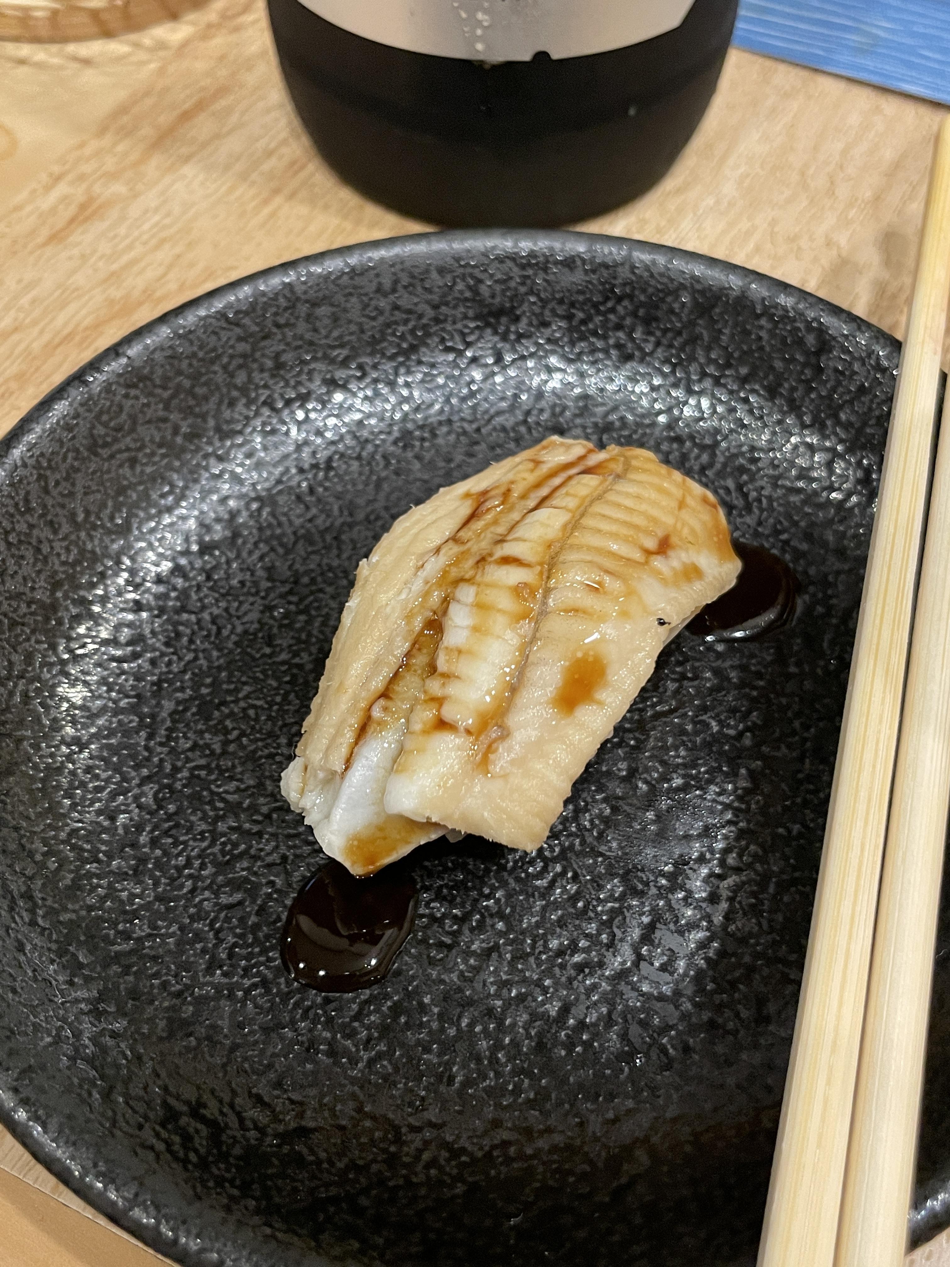 요건 그냥 장어꼬치구이. 갓구워져 나와서 아뜨 아뜨하면서 쏙 빼먹었다. 장어이즈 뭔들... 이 장어구이보단 뒤에 나온 양념 묻힌 장어구이가 진짜 존맛탱