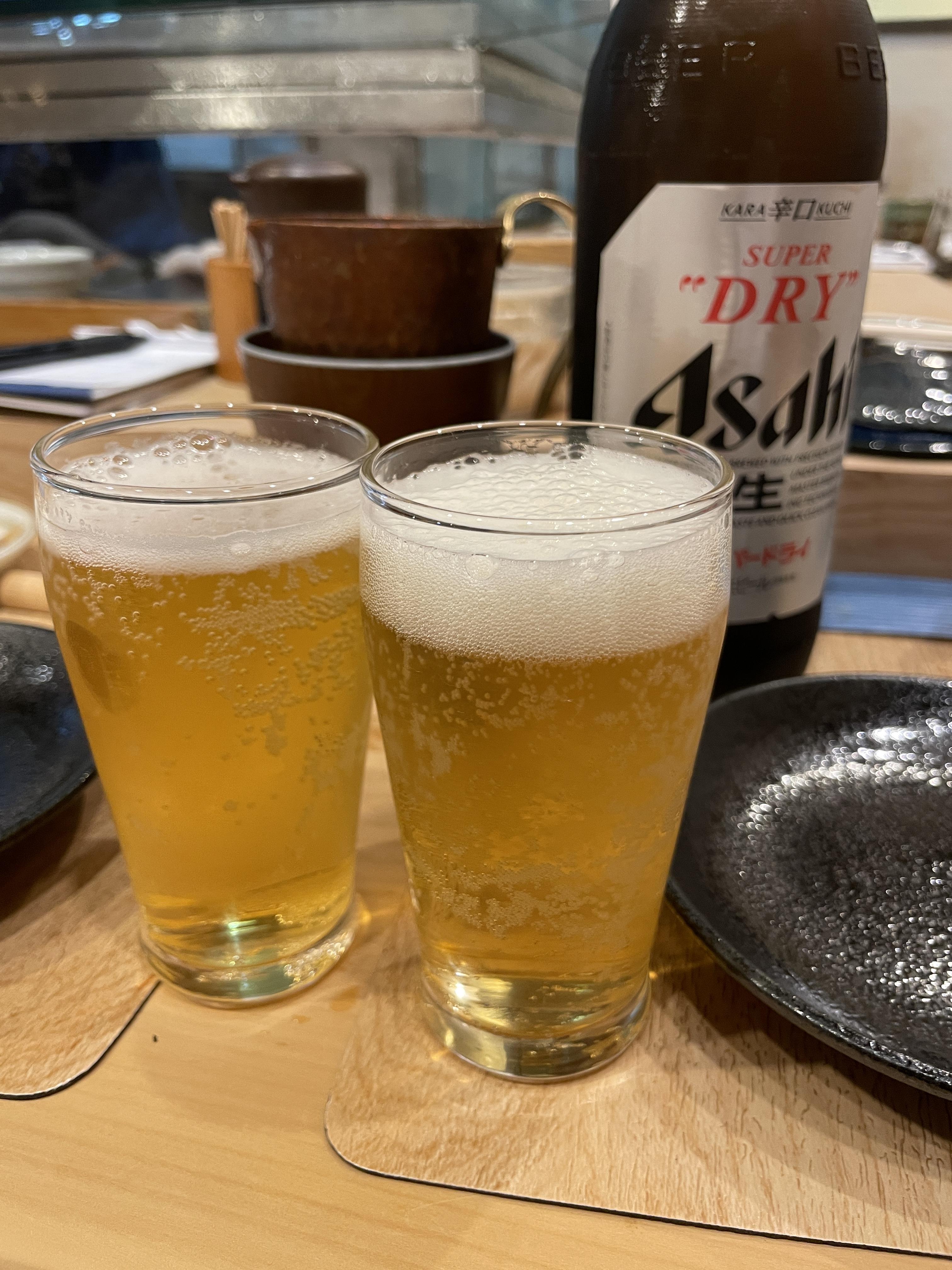 초밥은 다 나오지도않았는데 홀짝홀짝 사케를 다먹어버려서 이때부터 맥주를 마시기 시작했다. 생맥이 있었음 더 좋았겠지만 아쉽게도 없어서 아사히 병맥으로 시켰다. 작은것도 파는데 누구 코에 붙이라고 😂