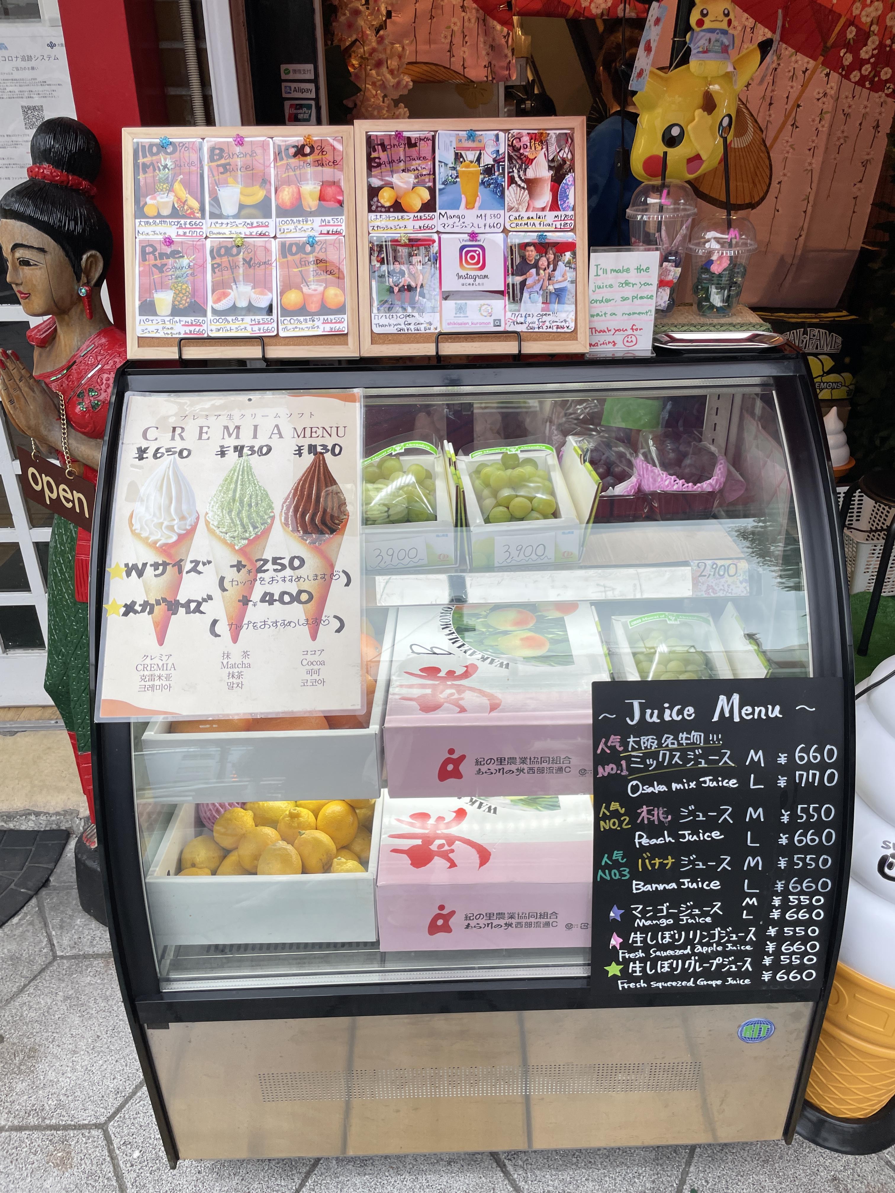 이른 저녁을 먹고 출국하려고 도톤보리 중심으로 이동하기 위해 구로몬시장을 나온 순간 눈에 띈 아이스크림가게.