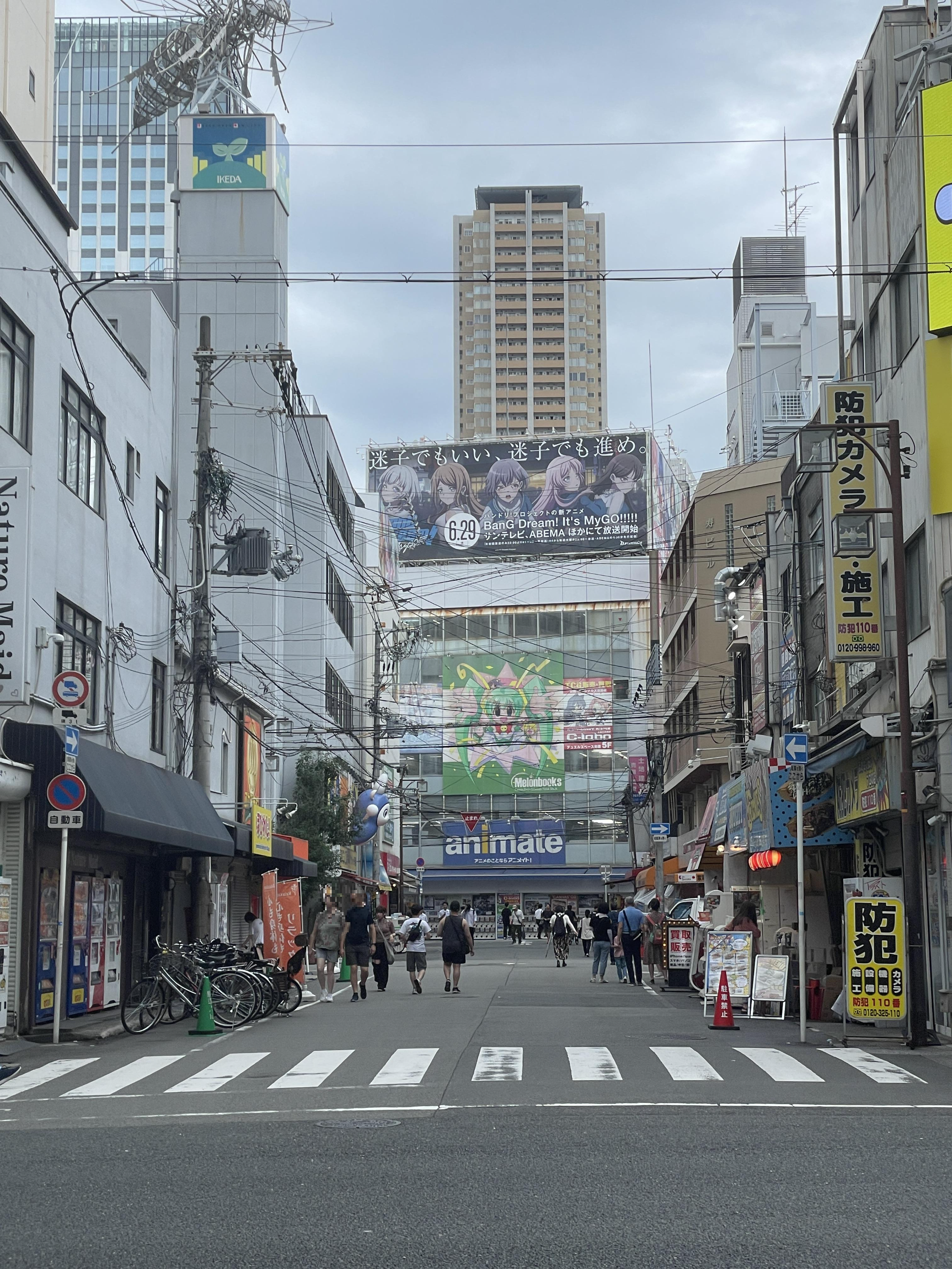 작은 골목 사이를 두고 마주보고있는 애니메이트와 타이토 게임스테이션. 여기서 왼쪽으로 가면 죠신 키즈랜드가 나온다.