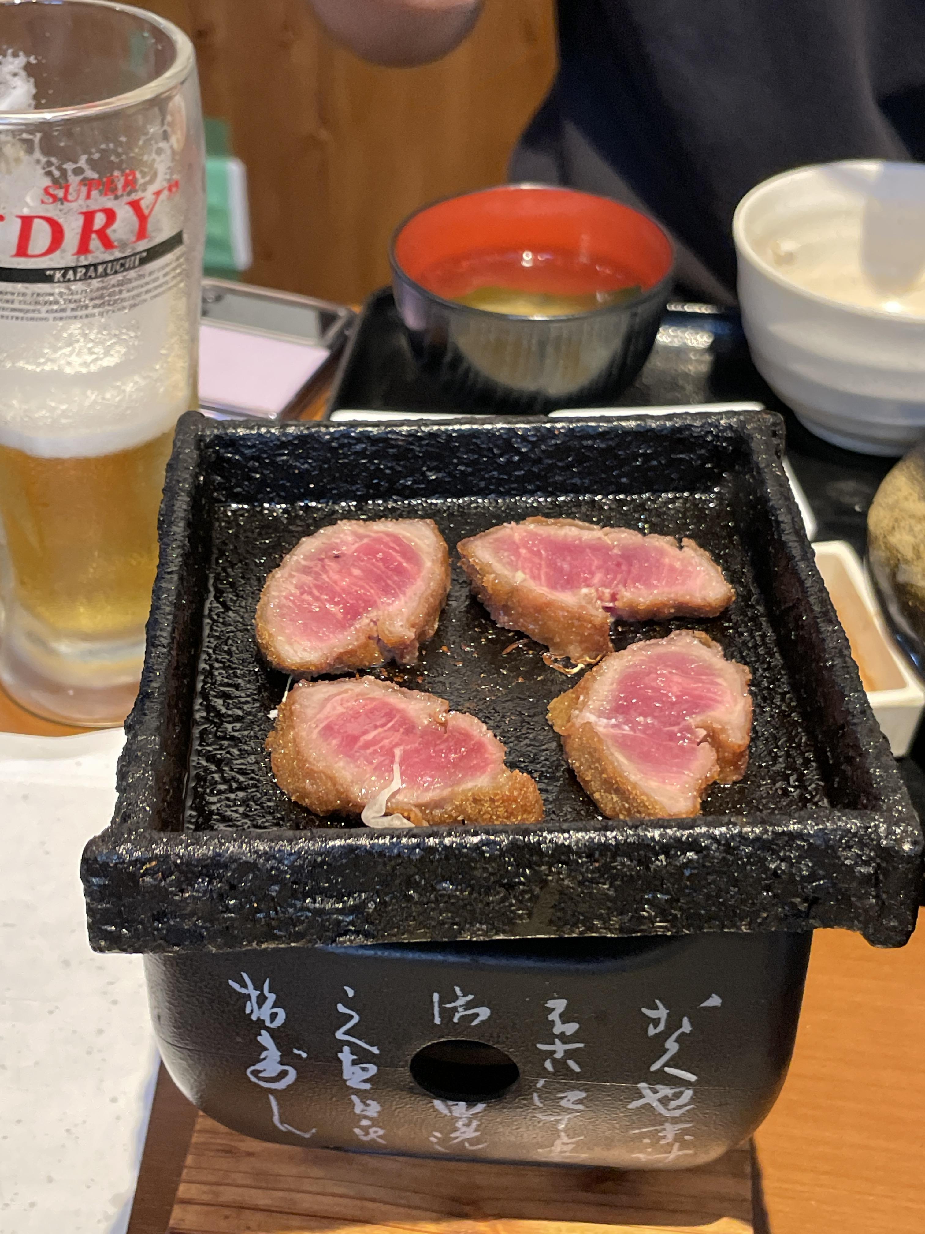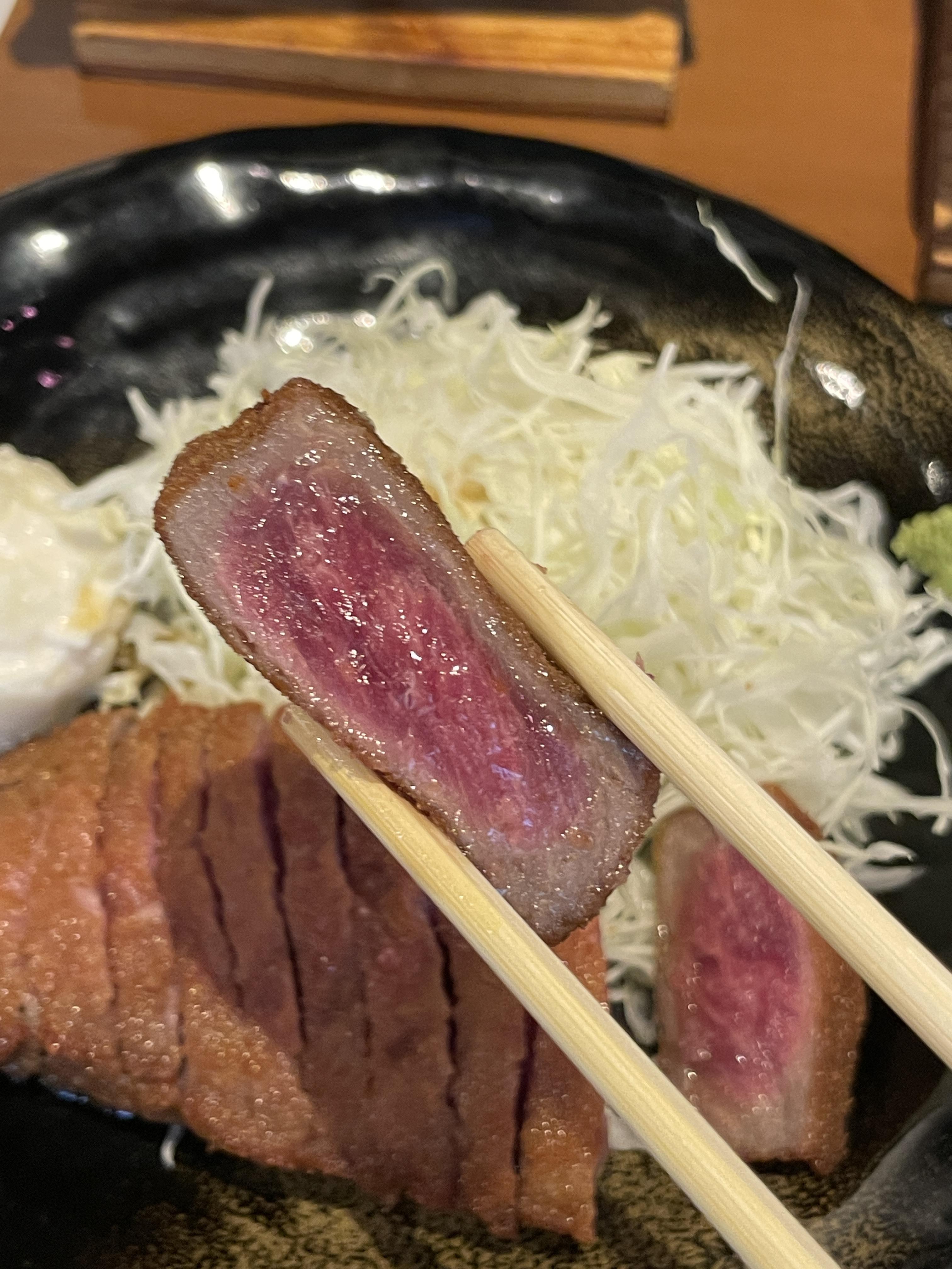 조금 기다리면 바로 나오는 규카츠. 안을 전부 익혀나오지 않기 때문에 금방나온다 ><