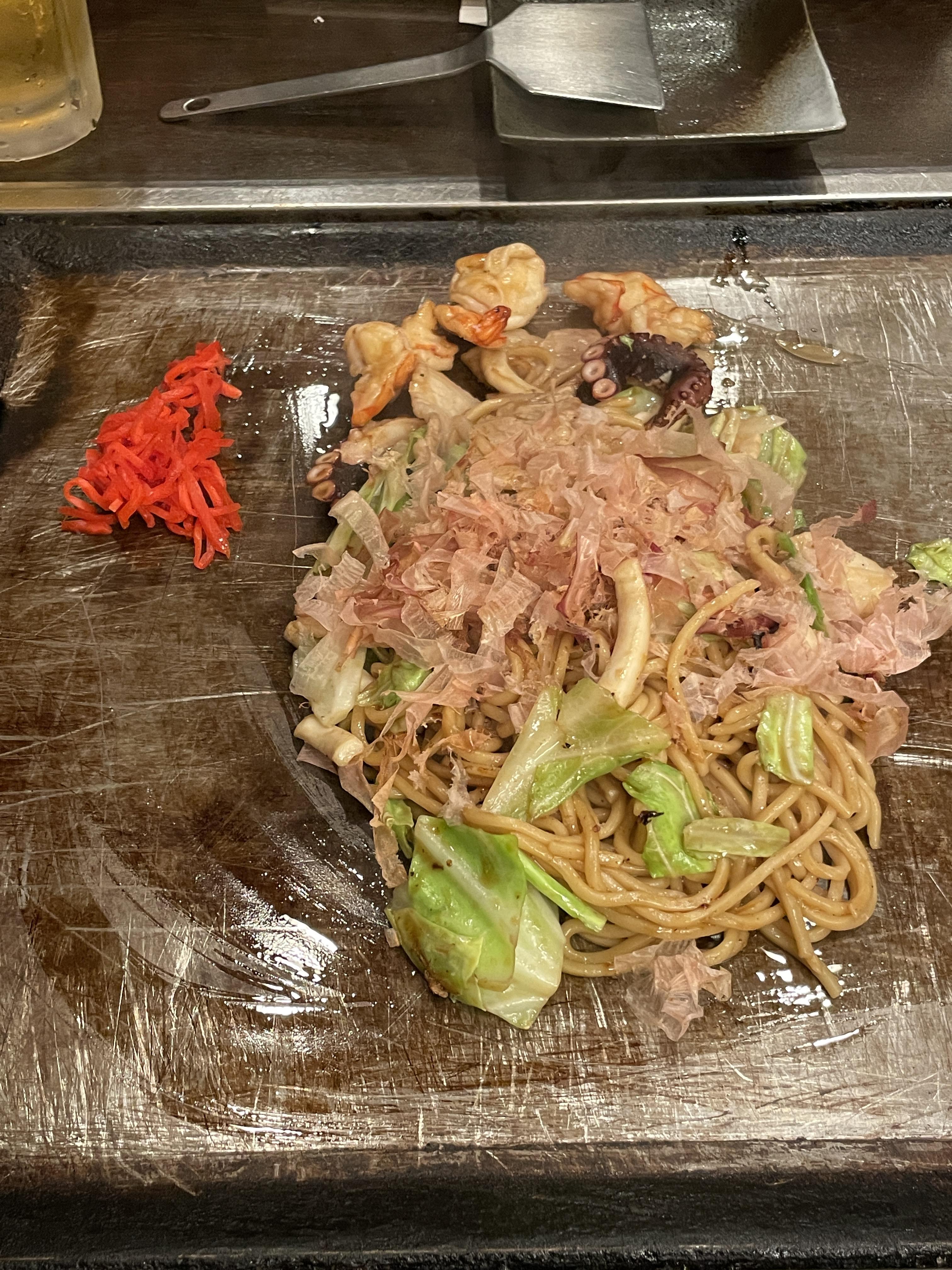 12시 조금 전에 규카츠 정식, 세시에 팬케익과 커피, 네시에 아이스크림을 조졌더니 도통 배가 고프지 않아서 야끼소바만 주문했다. 우리가 시킨 야끼소바는 해물이 들어간 스페셜 야끼소바. 존맛탱 ㅡㅡ 어쩌다 간건데 존맛탱!!!